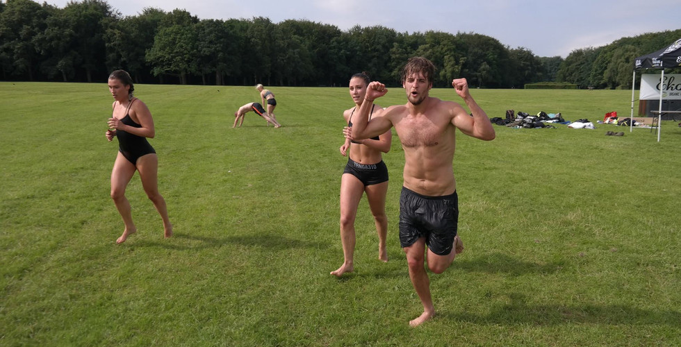 Hoe een grap van gym maatje Anthony op de Facebook page van onze Box er toe heeft kunnen leiden dat wij als een stel idioten op zondag ochtend om 8.45 – ja, dat lees je goed, 8.45 op zóndag – de berg in het Amsterdamse bos op en af zijn gaan rennen? En we vervolgens ook nog met het hele zooitje de plomp in zijn gesprongen? Wij wilden het liever ook even niet meer weten op dat vroege uur… Maar sinds de organisatie van deze happening deels in onze handen was, zou je zelfs kunnen stellen dat het toch op zijn minst een béétje onze eigen schuld was allemaal. Maar zoals het gaat met veel dingen in het leven, als je er eenmaal bent… Precies! Het werd een top ochtend en met een enorme smile op onze gezichten schreven we dit verslag.
